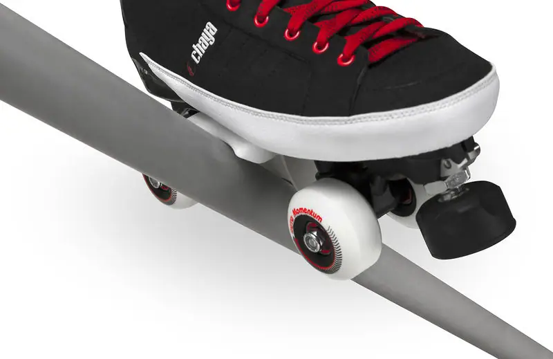 Grind Blocken fra Chaya er et formålsbygget tilbehør til skateparken. Monter den til enhver quad skate hvor Chaya Shari plader er brugt. Denne Grind Block gør det muligt for skaters at udføre vert skating på side-by-sides i parken. Ram copingen hårdt for smøragtige bløde slides uden frygten for at hænge fast med dit hjul på vejen ned af bowlen.