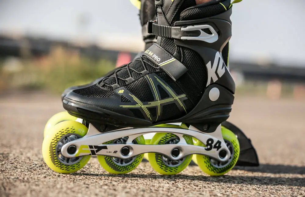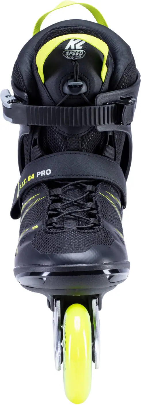 K2 F.I.T 84 Sort/Gul er et par inliners til mænd, og de byder på en god sammenhæng mellem performance og pris. De er et oplagt valg til udendørs aktiviteter, træning og transport. Disse K2 inliners er udstyret med en blød støvle i høj kvalitet. Den bløde konstruktion sikrer et behageligt fit. K2 F.I.T 84 Sort/Gul er små i størrelsen. Vælg gerne en størrelse større end din normale skostørrelse.