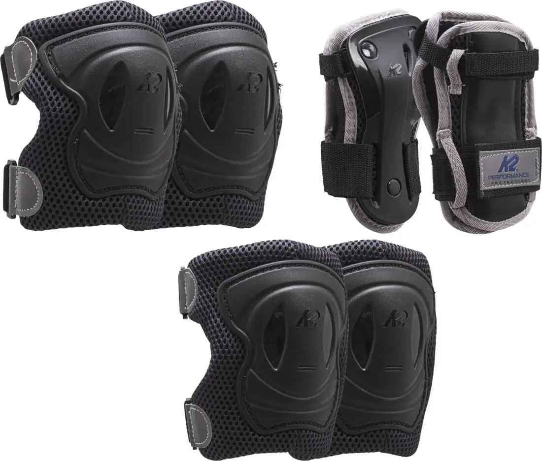 3-paks beskyttelsessæt til kvinder. K2 Performance sættet er med beskyttelse til håndled, albuer og knæ. Fremstillet af åndbart mesh-materiale og med elastiske stropper.