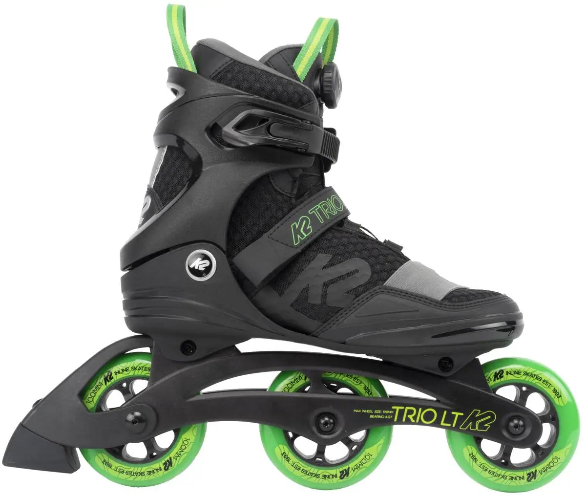 K2 Trio LT 100 er et par inliners, og de er designet til de bedste præstationer. Hvis du kan lide at træne samtidig med, at du transporterer dig selv fra A til B, er disse inliners et optimalt valg. På disse K2 inliners finder du en one-piece og blød støvle. Denne kombination giver en behagelig pasform og effektiv respons K2 Trio LT 100 er små i størrelsen. Vælg gerne en størrelse større end din normale skostørrelse.