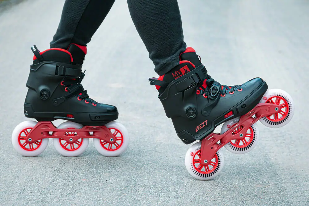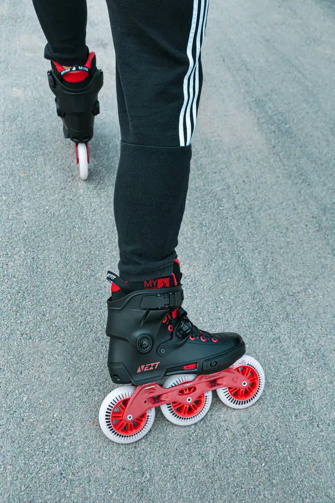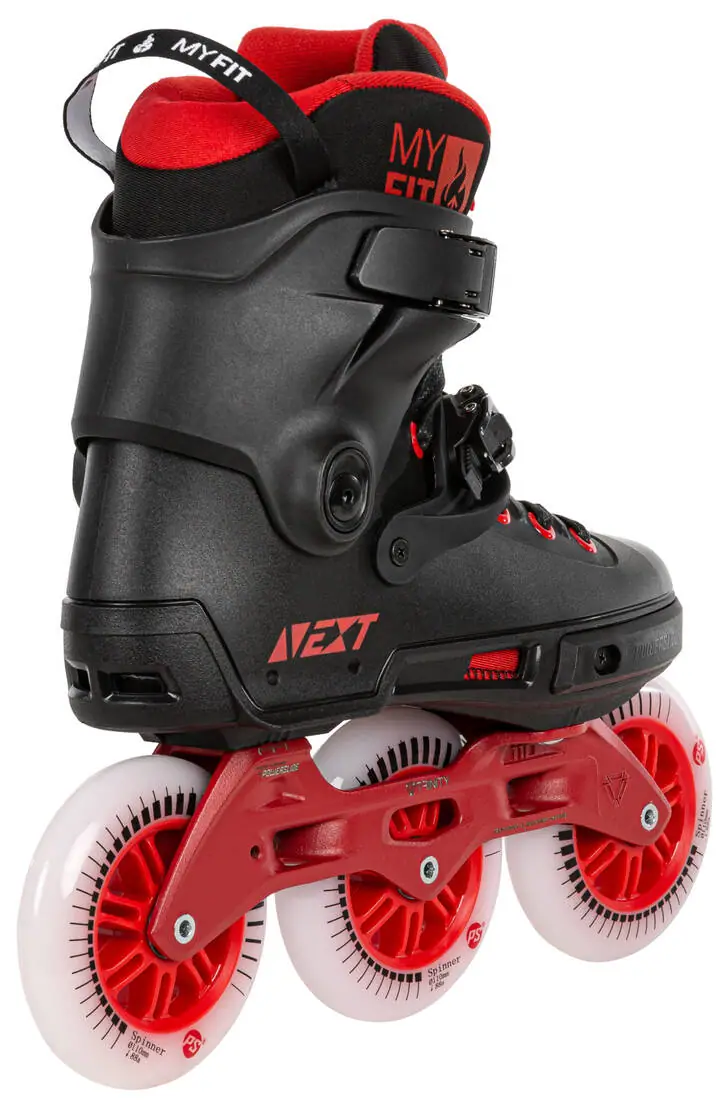 Powerslide Next Black Red 110 er et par freeskates, og de er designet til de bedste præstationer. De er designet til urban freestyle og freeskate med høj fart og masser af spænding. På disse Powerslide freeskates finder du en hård støvle. Så hvis kraftoverførsel og støtte er vigtigt for dig, har du her et par rulleskøjter, der leverer det du søger. Powerslide Next Black Red 110 er små i størrelsen. Vælg gerne en størrelse større end din normale skostørrelse. Disse rulleskøjter passer dig, hvis du har smalle fødder