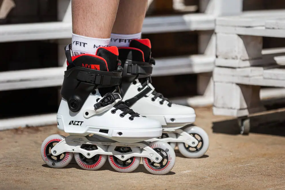 Powerslide Next Sort Hvid 90 er et par freeskates, og de byder på en god sammenhæng mellem performance og pris. De er designet til urban freestyle og freeskate med høj fart og masser af spænding. På disse Powerslide freeskates finder du en hård støvle. Så hvis kraftoverførsel og støtte er vigtigt for dig, har du her et par rulleskøjter, der leverer det du søger. Powerslide Next Sort Hvid 90 er små i størrelsen. Vælg gerne en størrelse større end din normale skostørrelse.