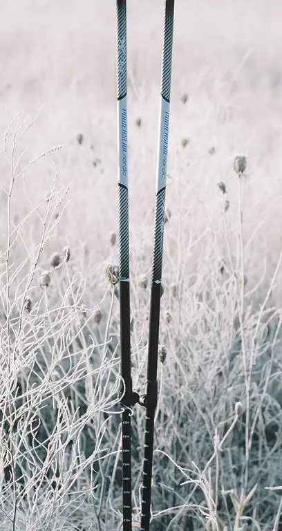 Fra Powerslide kommer dette sæt Nordic Carbon komposit-stave. De har wolfram spidser og en to-delt konstruktion. Netop den to-delte konstruktion gør det muligt at regulere stavene i længden, fra 130 – 170mm.
