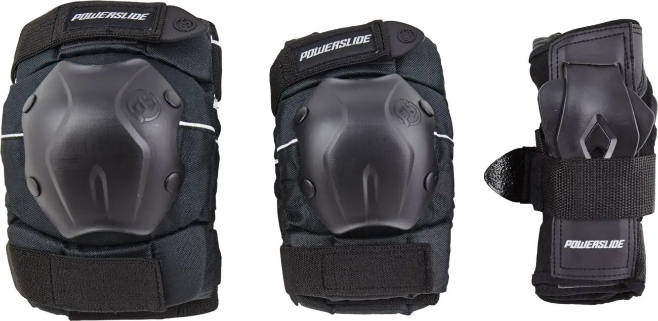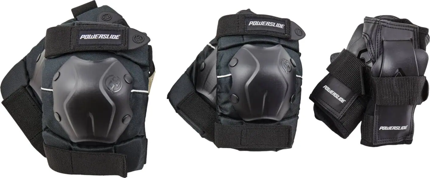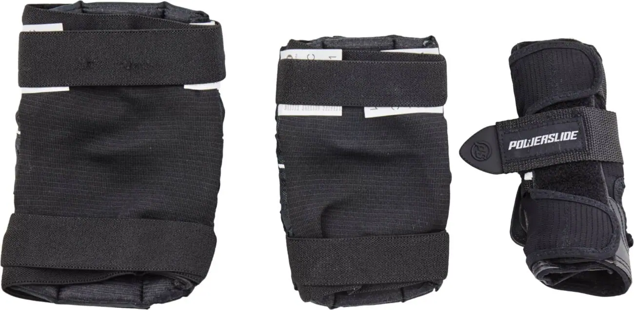 Komplet sæt med knæbeskyttere, albuebeskyttere og ventilerede håndledsbeskyttere.