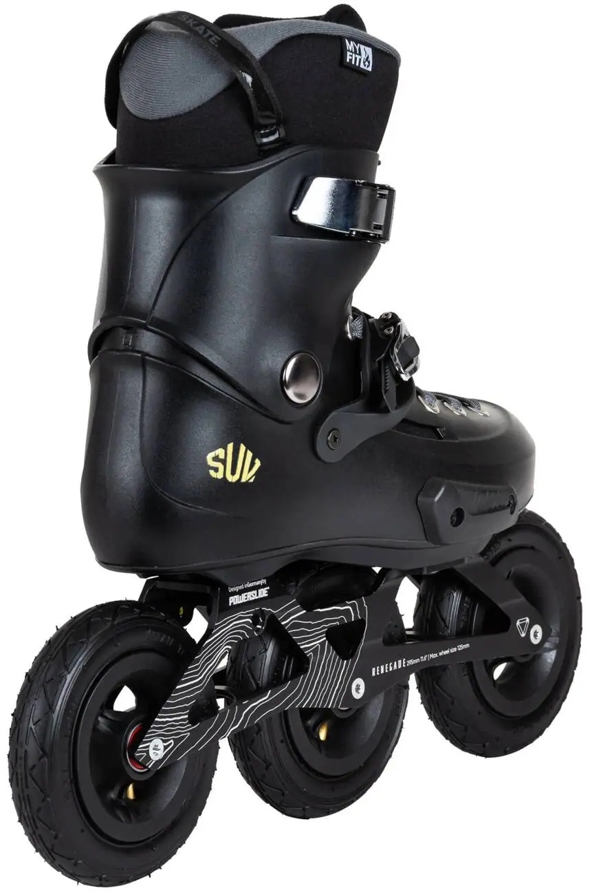 Powerslide Zoom Renegade 125 Off Road er et par nordic skates, og de byder på en god sammenhæng mellem performance og pris. De er designet til at køre off-road på skovstier og kuperet terræn, så du kan udforske naturen samtidig med at du motionerer. Powerslide Zoom Renegade 125 Off Road er små i størrelsen. Vælg gerne en størrelse større end din normale skostørrelse. Disse rulleskøjter passer dig, hvis du har lidt smalle fødder.