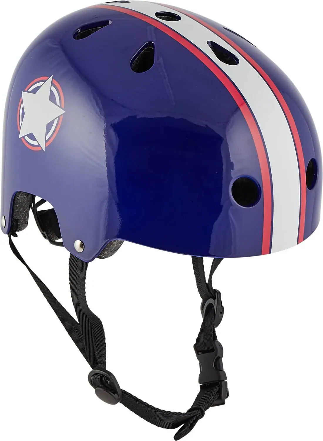 The SFR justerbar børnehjelm er en klassisk hjelm i skatestil som også kan bruges til inlines/side-by-side. Med et farverigt udseende og et letanvendeligt justerbart spænde i nakken.