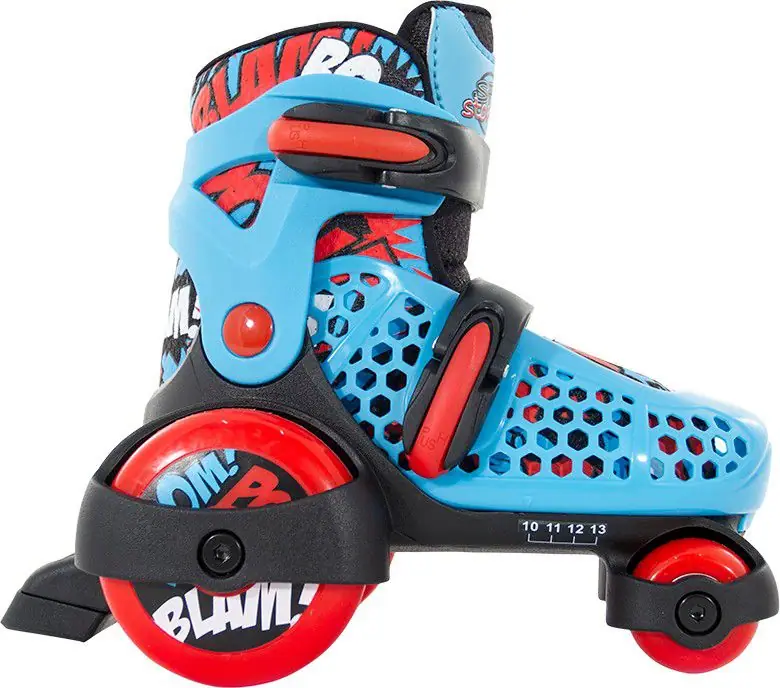 En af de mest begyndervenlige rulleskøjter til børn. Foden er placeret meget lavt for bedre kontrol takket være de store hjul som er placeret på ydersiden. Hele rulleskøjten kan justeres i størrelsen for at vokse med barnets fødder for en længere levetid. God ankel stabilitet samt aftagelig og vaskbar inderstøvle. Sikkerheds spænder der ikke går op af sigselv og langsomt rullende kuglelejer så de er lettere at køre på for nybegyndere, kan udskiftes efterfølgende.