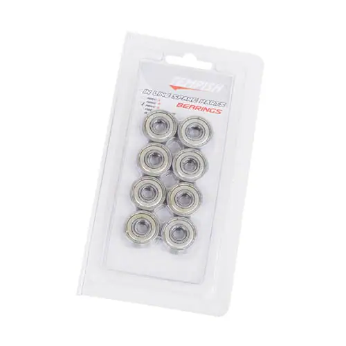 Sæt med 8 Kuglelejer fra Tempish. Bemærk: Man skal bruge 2 sæt til at skifte kuglelejer på et par skøjter.