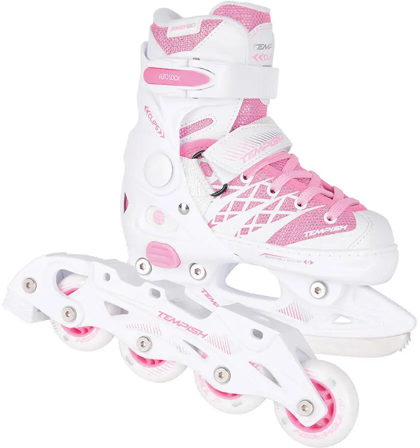 Versatile skøjter fra Tempish, lavet til børn. Klingen kan skiftes, så barnet både kan bruge den om sommeren og vinteren. Støvlen er også størrelsesjusterbar.