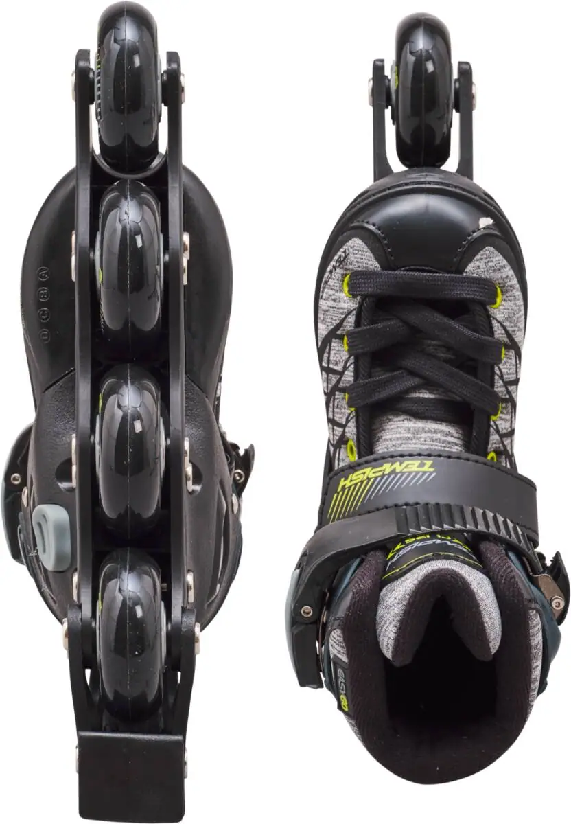 Tempish Clips Justerbar er et par inliners til børn, og de byder på en god sammenhæng mellem performance og pris. De kan justeres i størrelsen, så de kan holde i op til flere sæsoner. Derfor er de perfekte til børn, der stadig vokser. Disse Tempish inliners er udstyret med en blød støvle i høj kvalitet. Den bløde konstruktion sikrer et behageligt fit. Tempish Clips Justerbar er små i størrelsen. Vælg gerne en størrelse større end din normale skostørrelse.