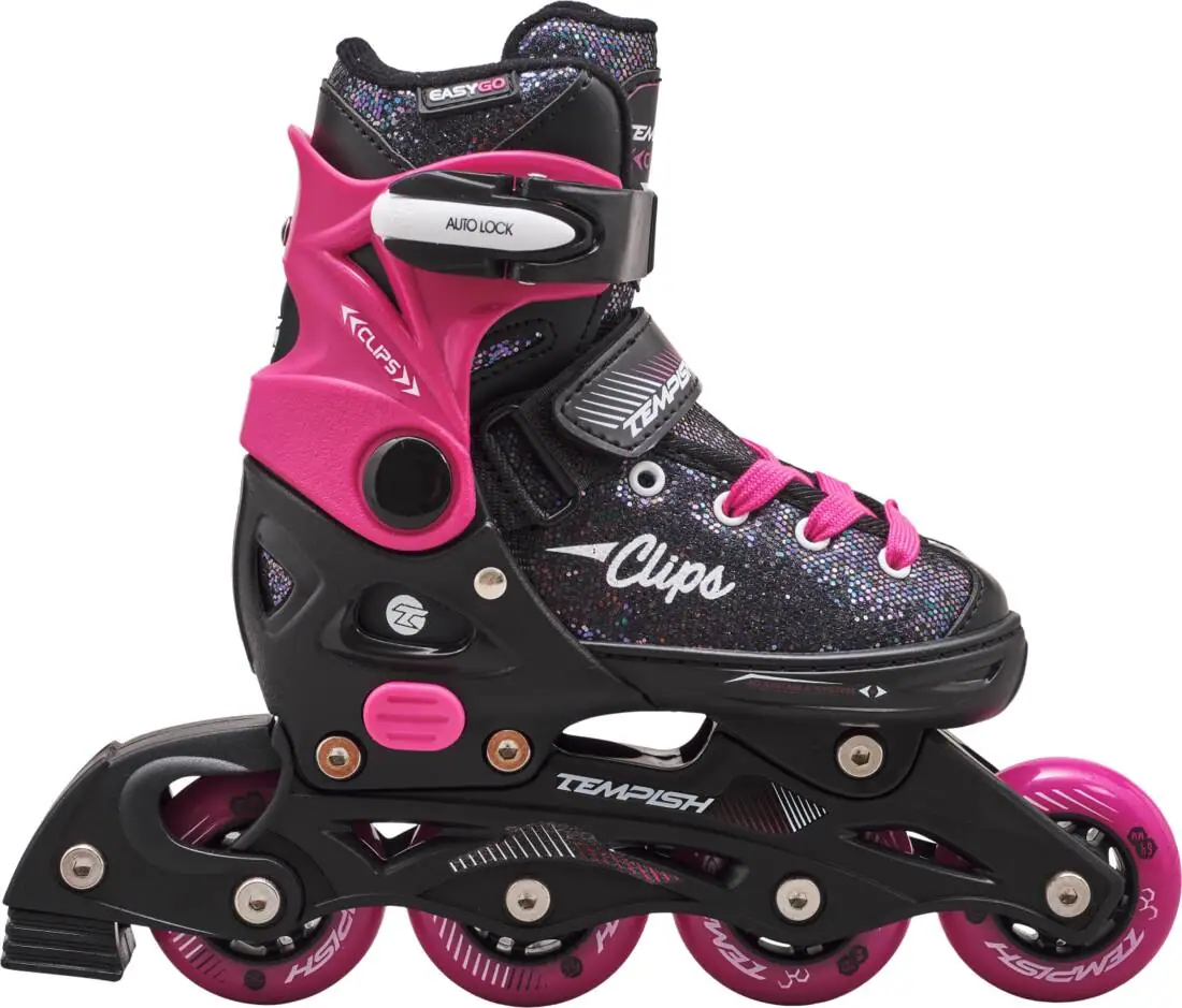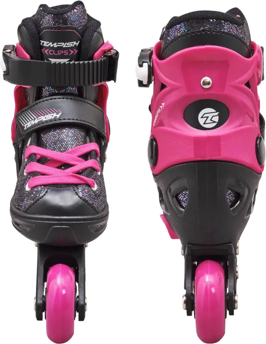 Tempish Clips Justerbar er et par inliners til børn, og de byder på en god sammenhæng mellem performance og pris. De kan justeres i størrelsen, så de kan holde i op til flere sæsoner. Derfor er de perfekte til børn, der stadig vokser. Disse Tempish inliners er udstyret med en blød støvle i høj kvalitet. Den bløde konstruktion sikrer et behageligt fit. Tempish Clips Justerbar er små i størrelsen. Vælg gerne en størrelse større end din normale skostørrelse.