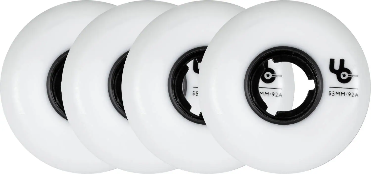 Du får det mest diskrete look med et hvidt blankt hjul og når det kommer til gripping power og rå fart, er hvide PU hjul de bedste.